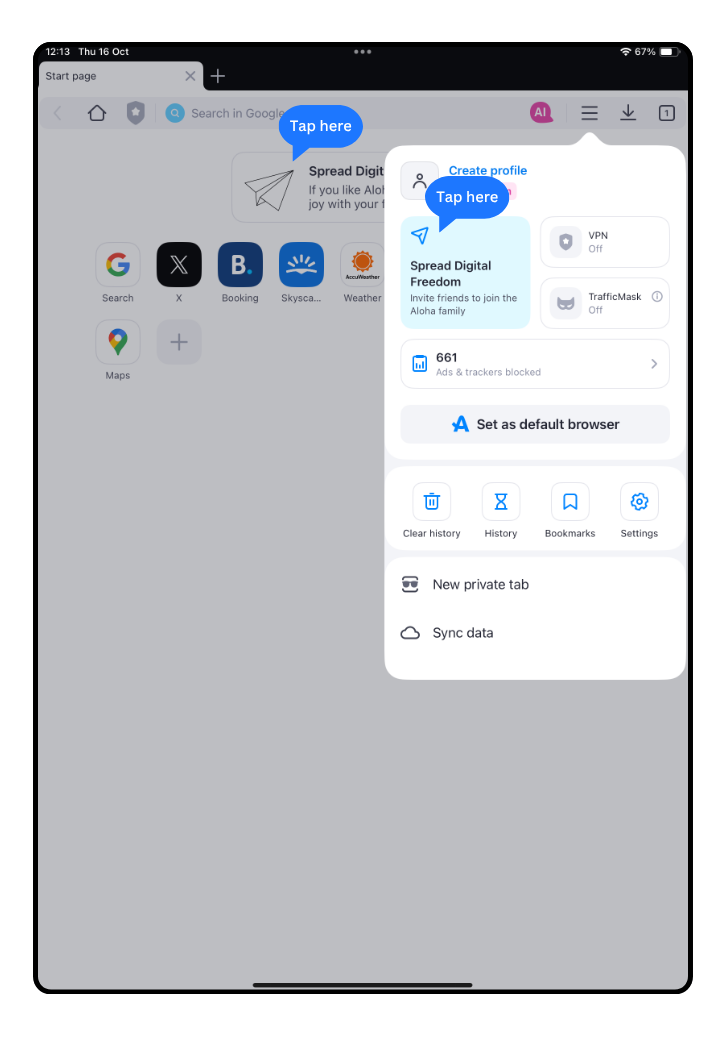 1. Open the referral program page using the banner on the speed dial screen, the widget in the menu, or the shortcut in settings: